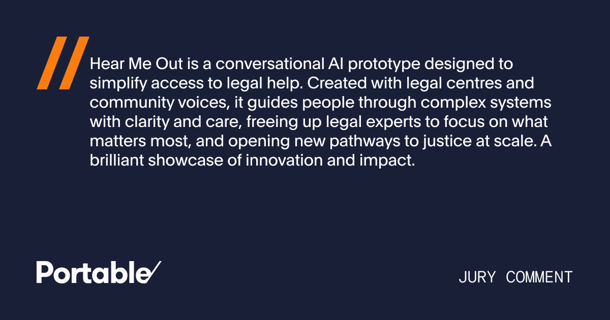 Hear Me Out, a conversational AI prototype helping people navigate legal services, received a Good Design Award Winner accolade in the Concept Design category.